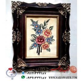 نام تابلو فزش: گلمشخصات : چله نخ رج شمار : 50 ابعاد فرش :30 در 40سانتیمترتعداد رنگ : 20قاب : چوب توسکا..