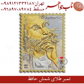 تمبر فاخر طلا رسمی حافظ مشخصات دومین تمبرطلای رسمی جمهوری اسلامی ایران تمبر یادگاری حافظ وزن : یک گرم شمش طلا تمبر طلا حافظ یک گرمی Haafez Gold Stamp محتویات جعبه طلا : تمبر نقره - تمبر کاغذی - هولوگرام اصالت اندازه جعبه : 109*162 میلیمتر روی تمبر تصویر حافظ پست جمهوری اسلامی ایران islamic republ..