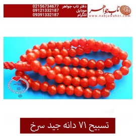 مشخصات تسبیح : تعداد 71 دانهسنگ جید سرخطول حلقه : 25 سانتیمتروزن : 30 گرم..