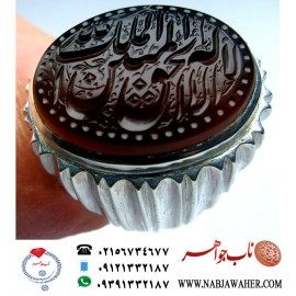 انگشترنفیس مردانه عقیق یمن خط حرّ حکاکی رضاقربانی ذکر لااله الاالله الملک الحق المبین رکاب جواهرنشان مظهری
