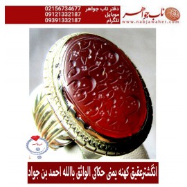 انگشترعقیق کهنه یمنی حکاکی الواثق باالله احمد بن جواد