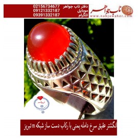 انگشتر عقیق سرخ دامله یمنی با رکاب دست ساز شبکه m تبریز سایز 61 وزن انگشتر 23 گرم..