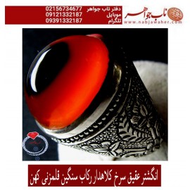 انگشتر نفیس عقیق سرخ کبدی یمنی و رکاب فاخراستاد حسین جم رضایی