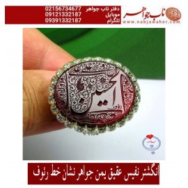 انگشترنفیس عقیق سرخ یمنی خطی حکاکی ممتاز هادی یونسیان خط رئوف