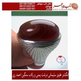 انگشترنفیس جزع یمانی تراش بادامی درشت و آب دار رکاب حاج احمد عزتی معروف به احمد ری