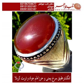 مشخصات انگشتر: انگشترعقیق سرخ یمنی و حرز امام جواد و تربت کربلا رکاب : نقره دست ساز استاد حق با مهرو امضا وزن انگشتر : 19 گرم سایز رکاب :65 ابعاد سنگ : 22 در 17 میلیمتر انگشترمردانه عقیق , عقیق کهنه یمنی , تربت کربلا, حرز امام جواد, فاخر , حق, ناب جواهر ,&nb..