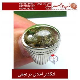 مشخصات انگشتر کم نظیر دُّر نجف :نگین : در نجف اشرف به ابعاد 18 در 12 میلیمتر رکاب : نقره دستسازوزن کل : 17 گرم سایز انگشتر : 61..