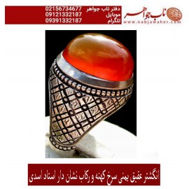 انگشتر عقیق یمنی سرخ وعسلی کهنه و رکاب نشان دار اسدی کد 5143