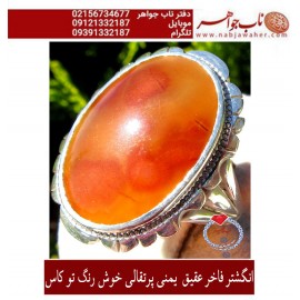 مشخصات انگشتر :انگشتر فاخر عقیق یمنی پرتقالی خوش رنگ تو کاس کهنهرکاب : نقره دست ساز استاد زاهد زنجان با مهر و امضا وزن انگشتر : 14 گرمسایز رکاب :60 ابعاد سنگ : 23 در 17 میلیمتر..
