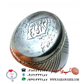 مشخصات انگشتر :انگشتر در شفاف نجف و حکاکی سوزنی ایت الکرسیرکاب : نقره دست ساز استاد احمد ری وزن انگشتر : 31 گرمسایز رکاب : 58 ابعاد سنگ : 20 در 15 میلیمتر..