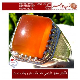 انگشتر عقیق نارنجی چهارگوش دامله آب دار و رکاب دست کد 1887