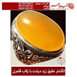 انگشتر عقیق زرد درشت با رکاب قلمزنی دستی کد 1985