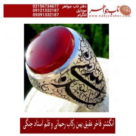 انگشترفاخرو نفیس عقیق سرخ یمنی و رکاب قلمزنی استاد جنگی