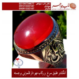 انگشتر عقیق سرخ و رکاب مهر دار قلمزنی برجسته