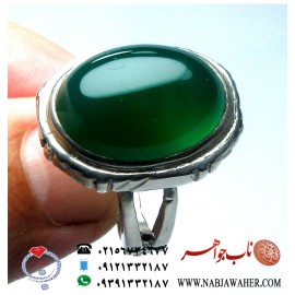 مشخصات انگشتر :نگین : عقیق خوشرنگ سبز ابعاد نگین : 15 در 20 میلیمتررکاب : نقرهسایز انگشتر : 60 وزن کل : 15 گرم..