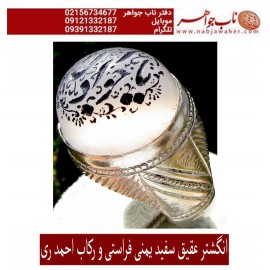 انگشتردرشت عقیق سفید یمنی دامله حکاکی یاجوادالائمه