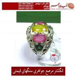 مشخصات انگشتر: انگشتر پنج نگین یاقوت و زمرد دو زمرد و دو یاقوت سرخ و یک یاقوت زرد رکاب : نقره ساخت حاج فرخاری خراسان وزن انگشتر : 14 گرم سایز رکاب :67 انگشتر , مرصع , ناب جواهر , فروشگاه آنلاین , انگشتر نقره در تهران , تهران , بداغی ..