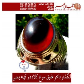 انگشتر فاخر عقیق سرخ کلاه دار کهنه یمنی