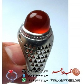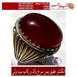 مشخصات انگشتر :انگشتر عقیق سرخ یمنیرکاب : نقره دست ساز شیرازی سید ولی با مهر و امضا وزن انگشتر : 26 گرمسایز رکاب :60 ابعاد سنگ : 24 در 18 میلیمتر..