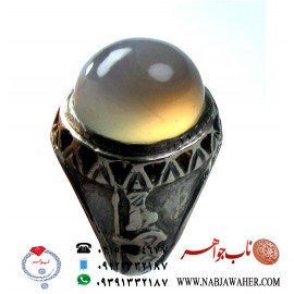 انگشتر نفیس عقیق جزع یمنی با تراش کهنه رکاب نقره