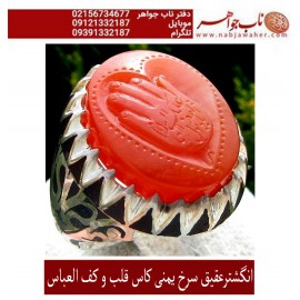 انگشتر عقیق سرخ یمنی خطی تراش کاس قلب و کف العباس ع