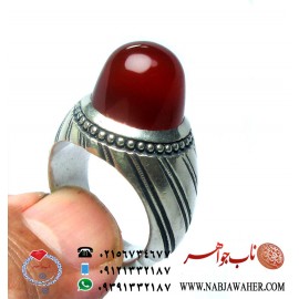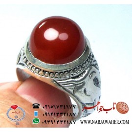 مشخصات انگشتر :انگشتر درشت عقیق سرخ یمنی و رکاب سنگین قلم زنیرکاب : نقره قلمزنی طاووس وزن انگشتر : 31 گرمسایز رکاب :70 قطر سنگ : 18 میلیمتر..