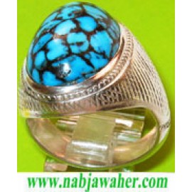 انگشترنفیس مردانه طبع دار فیروزه نیشابوری با رکاب شبکه نقره استاد افتخاری تهران افتخاری