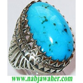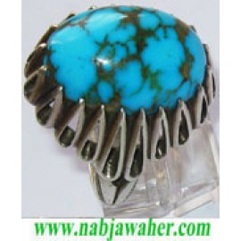 انگشترنفیس مردانه طبع دار فیروزه نیشابوری با رکاب شبکه نقره شاکری خراسان