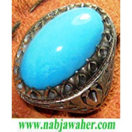 انگشترنفیس مردانه کم نظیر فیروزه نیشابوری بو اسحاقی با رکاب مرصع نقره دستساز قدیمی