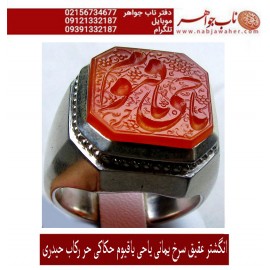 مشخصات انگشتر:انگشترفدیوم مردانه عقیق سرخ یمنی رکاب نفیس دستسازتهران_خسروی (اسفندیار خسروی) و خط حرّ (استاد رضا قربانی)..