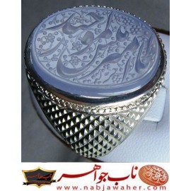 مشخصات:نگین خطی عقیق یمنی حکاکی استاد رضا قربانی خط حرّ ذکر السلام علی فاطمه الزهراام السبطین الحسن والحسین..