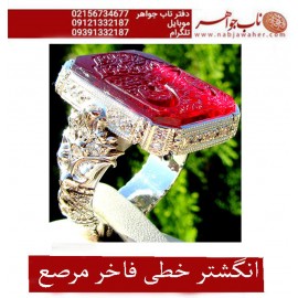 مشخصات انگشتر: انگشترنفیس عقیق سرخ یمنی حکاکی یا امیرالمومنین حیدر خط اقل میرزا استادمجتبی آتشباز ورکاب دوقاب شیرازی ..