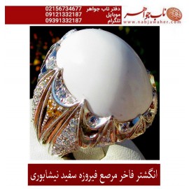 مشخصات انگشتر: انگشترنفیس مردانه فیروزه سفید با رکاب سلطتنتی مرصع برلیان استاد مظهری تهران ..