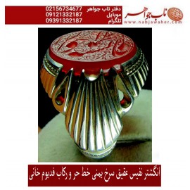 مشخصات انگشتر:انگشترنقره مردانه عقیق سرخ جگری کمنظیر یمنی رکاب نقره نفیس دستسازمیرزایی زنجان و قلمزنی ساعی..