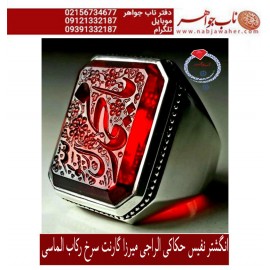 انگشترنفیس گارنت سرخ حکاکی یا محمد ص خط الراجی میرزا استادمجتبی آتشباز ورکاب محمد الماسی