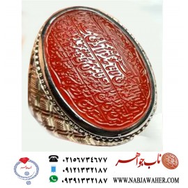 مشخصات انگشتر: انگشترنفیس عقیق سرخ یمنی حکاکی یا باب الحوائج خط اقل میرزا استادمجتبی آتشباز ورکاب قلمزنی فرشاد ساعی ..