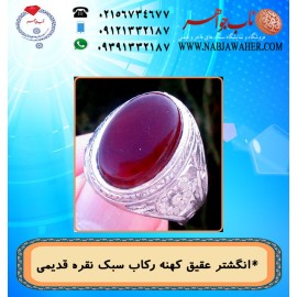 انگشترعقیق سرخ یمن و رکاب نقره کهنه قلمزنی