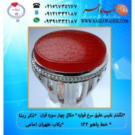 انگشترنفیس عقیق سرخ حکاکی چهار سوره قران و ذکر قنوت خط یاهو