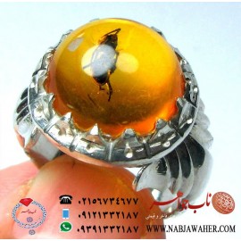انگشتر اسپرت کهربا با زنبور طبیعی