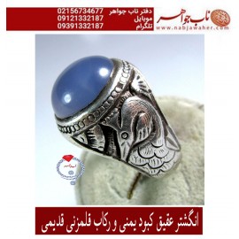 انگشترمردانه نقره عقیق کبود یمنی و رکاب فاخرسنگین وزن دهقانی