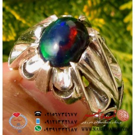 انگشتراوپال معدنی اصیل اتیوپی و تلالو رنگ عالی تراش دامله و رکاب نقره دست ساز کاوه مشهد