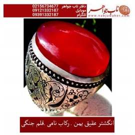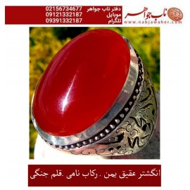 انگشترفاخر , عقیق سرخ یمانی , انگشتر قلمزنی جنگی, قلمزنی استاد جنگی, خرید و فروش انگشتر فاخر و نفیس, رکاب دست سازرحمانی , گالری ناب جواهر , فروشگاه آنلاین , انگشتر نقره در تهران , جنگی, رکاب نقره قلمزنی ,