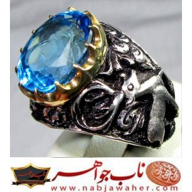 مشخصات انگشتر:انگشترنقره مردانه توپاز اصیل همراه با شناسنامه بین المللی و رکاب فاخر احمدنامی قلمزنی جنگی..