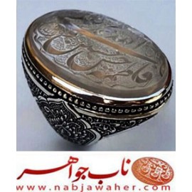 انگشترنفیس مردانه درّ نجف خط المذنب میرزا حکاکی استاد مجتبی اتشباز ذکر پنج تن آل عبا رکاب افتخاری قلمزنی ساعی