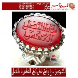 انگشتر عقیق سرخ یاقوتی خطی کوفی العطش یا ابا الفضلمتن حکاکی: العطش یا ابا الفضل رکاب : نقره شبکهابعاد سنگ : 18 در 14 میلیمتر به وزن 13 گرم و سایز 63..