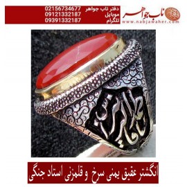 انگشتر فاخرنقره و عقیق سرخ یمنی قلمزنی استاد محسن جنگی