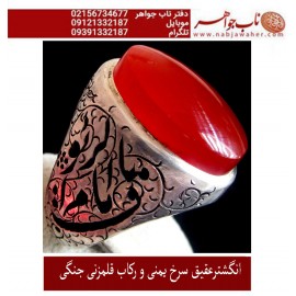 انگشتر فاخرنقره و عقیق سرخ یمنی قلمزنی استاد محسن جنگی