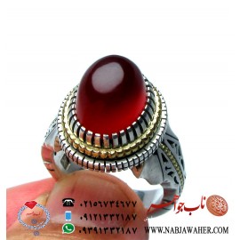 مشخصات انگشتر :انگشترنفیس کم نظیرعقیق سرخ ابدار کهنه یمنی و رکاب فاخر دومهره مرحوم حاج ممی سعادت نگین این انگشتر کم نظیرعقیق سرخ ابدار کهنه یمنی گرد و به قطر18 میلیمتر است رکاب این انگشتر از نمونه های منحصر ساخته شده توسط استاد مرحوم حاج ممی سعادت هست و همراه با حک دو مهر ایشان است تراش سنگ دامله است سایز انگشتر » 63 وزن ..