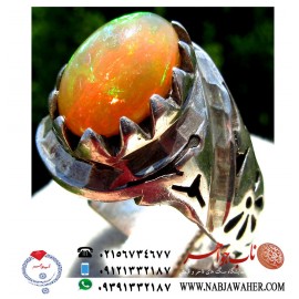 انگشترفاخر اوپال طبیعی بسیار الوان و با تلئلو رکاب دست سازعدنان
