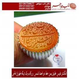 انگشتر نفیس خطی عقیق زرد یمنی و رکاب تهران امامی